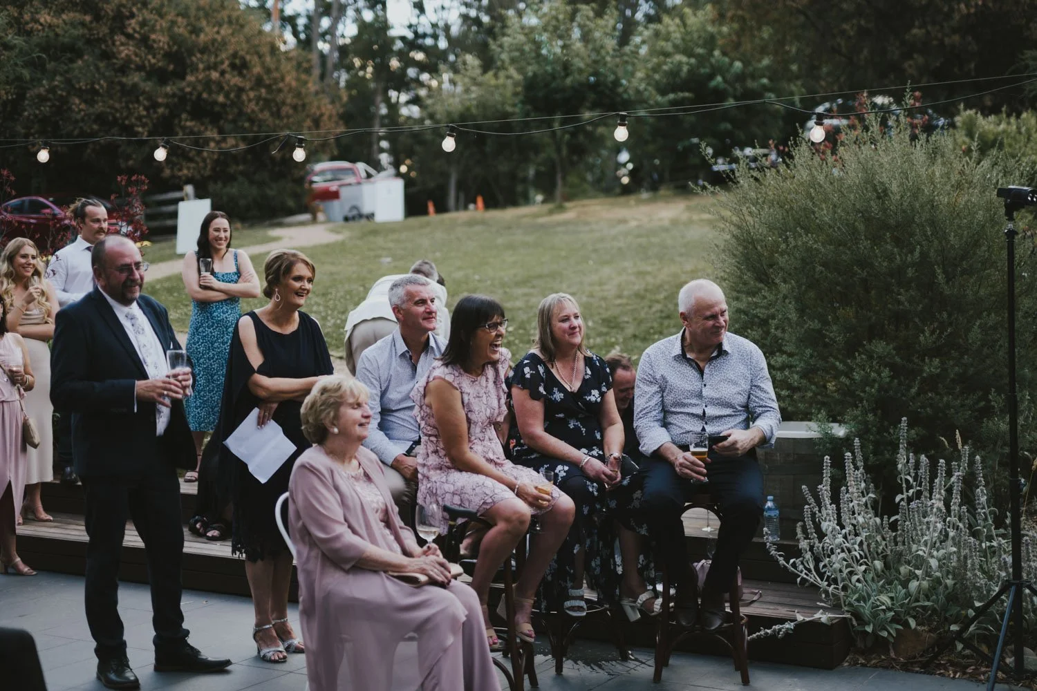 The contrasting colors of the wedding party’s attire were fun to take pictures of in the morning before the ceremony. Classy, muted tones of black and off shades of white. The winding paved path Morgan and Ben walked along to the altar cut through the grassy hillside, ending in a lovely modern wooden structure with decadent bunches of flowers bursting through. A forest of soaring trees stood pristinely in the background. Vows were said under this lovely structure—Classy, bohemian, rustic, and beautiful. The gentle breeze of the afternoon tickled the faces of all the family and friends gathered to celebrate the union of two souls together, reminding everyone of the beauty and blessing it is to be where we’re at. It was the perfect Melbourne outdoor wedding ceremony.